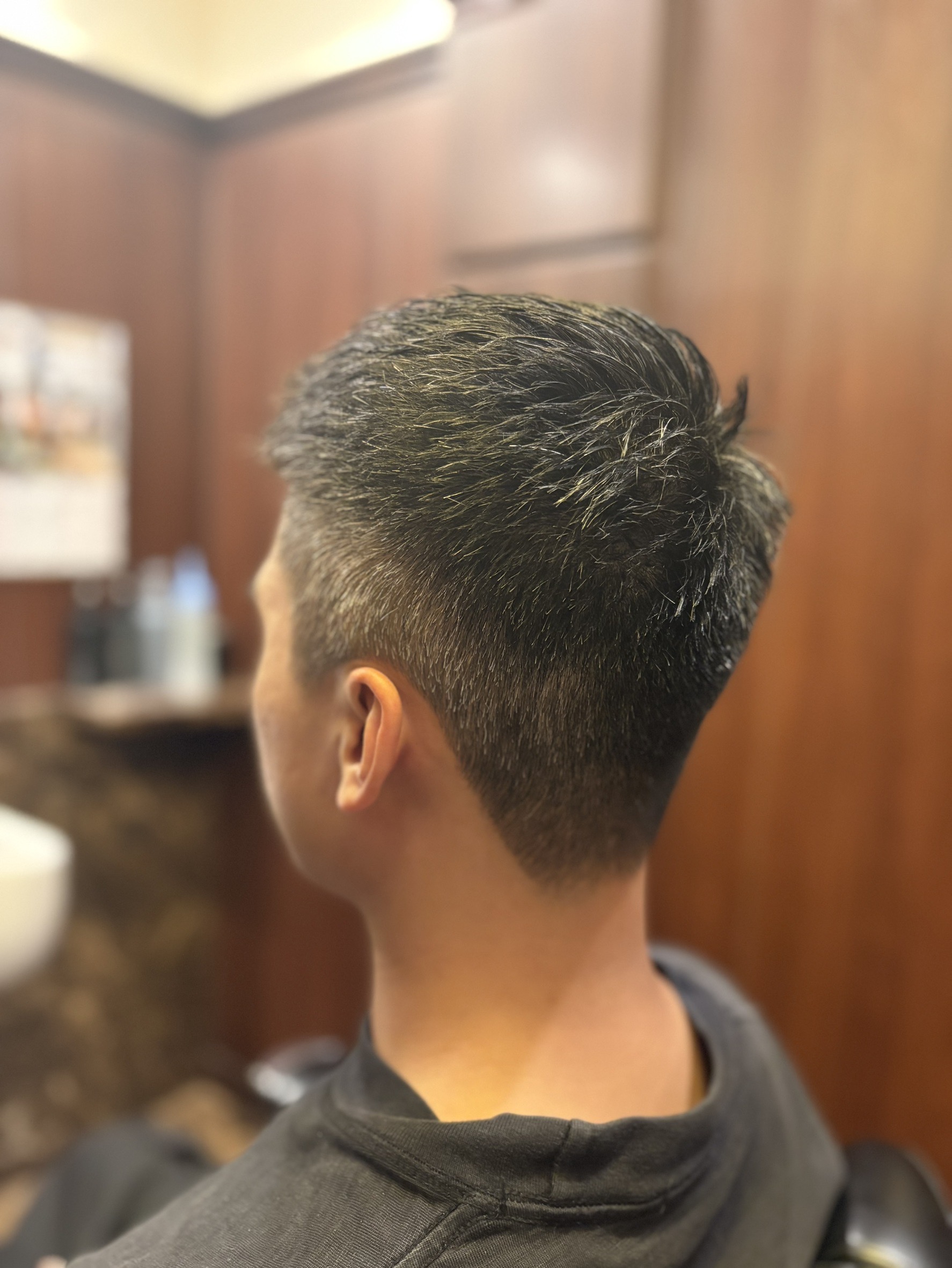 今回のスタイルは、低めのフェードで自然なグラデーションを作りつつ、トップは動きを出しやすい長さを残したバランス重視のメンズカットです。刈り上げすぎないフェードなので、初めての方でも挑戦しやすく、ビジネスシーンにも馴染みやすいのが特徴です。「サイドが膨らみやすい」「後ろのシルエットが気になる」といったお悩みも、骨格や毛流れに合わせて丁寧に調整することで、扱いやすくまとまりのある仕上がりになります。スタイリングも簡単で、軽くワックスをなじませるだけで自然な立体感が出せます。