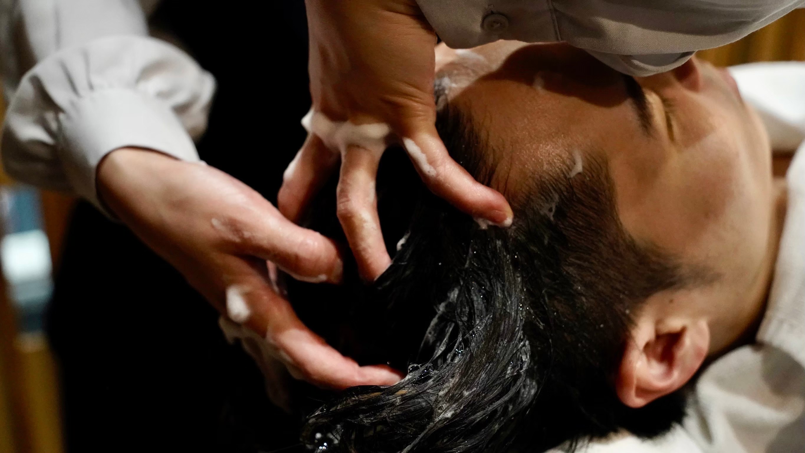 HIRO銀座バーバーショップ京都本店では、カットやフェードの仕上がりだけでなく、その後の頭皮状態まで含めて快適に過ごせる提案を行っています。ヘッドスパ中は照明や空間も落ち着いており、短時間でもリラックスしやすいと好評です。理容ならではの顔剃りと組み合わせることで、全体の清潔感もより高まります。