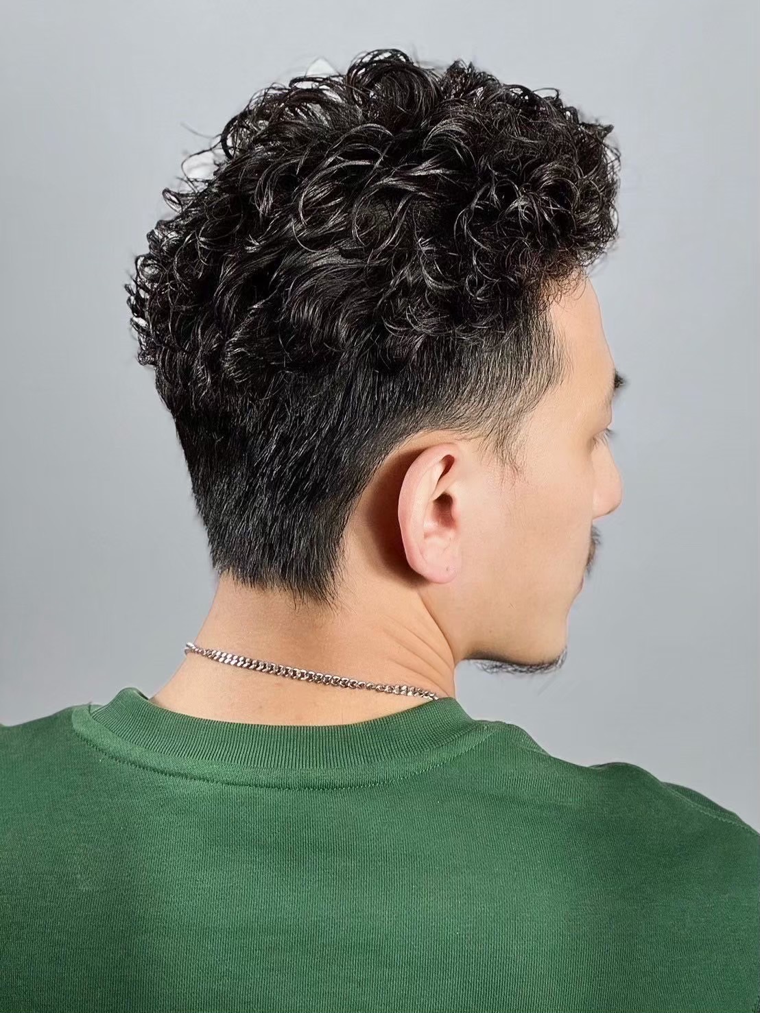 濡れパンは、しっかりとしたカール感と自然なツヤが特徴の人気スタイルです。アイロンで髪に動きをつけたあと、スタイリング剤でウェットな質感に仕上げることで、大人っぽく色気のある雰囲気を演出できます。フェードスタイルとの相性も良く、サイドをすっきりさせることでトップの動きがより際立ち、清潔感と男らしさを両立できます。