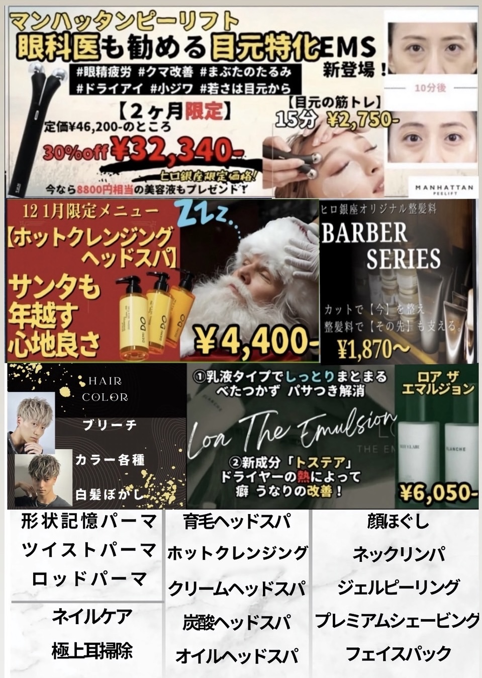 日々いろいろなサービス案を体験して、様々な商材も試しています!その中でヒロ銀座名駅店のお客様にとって良いものだけを厳選しておすすめメニューにしています!