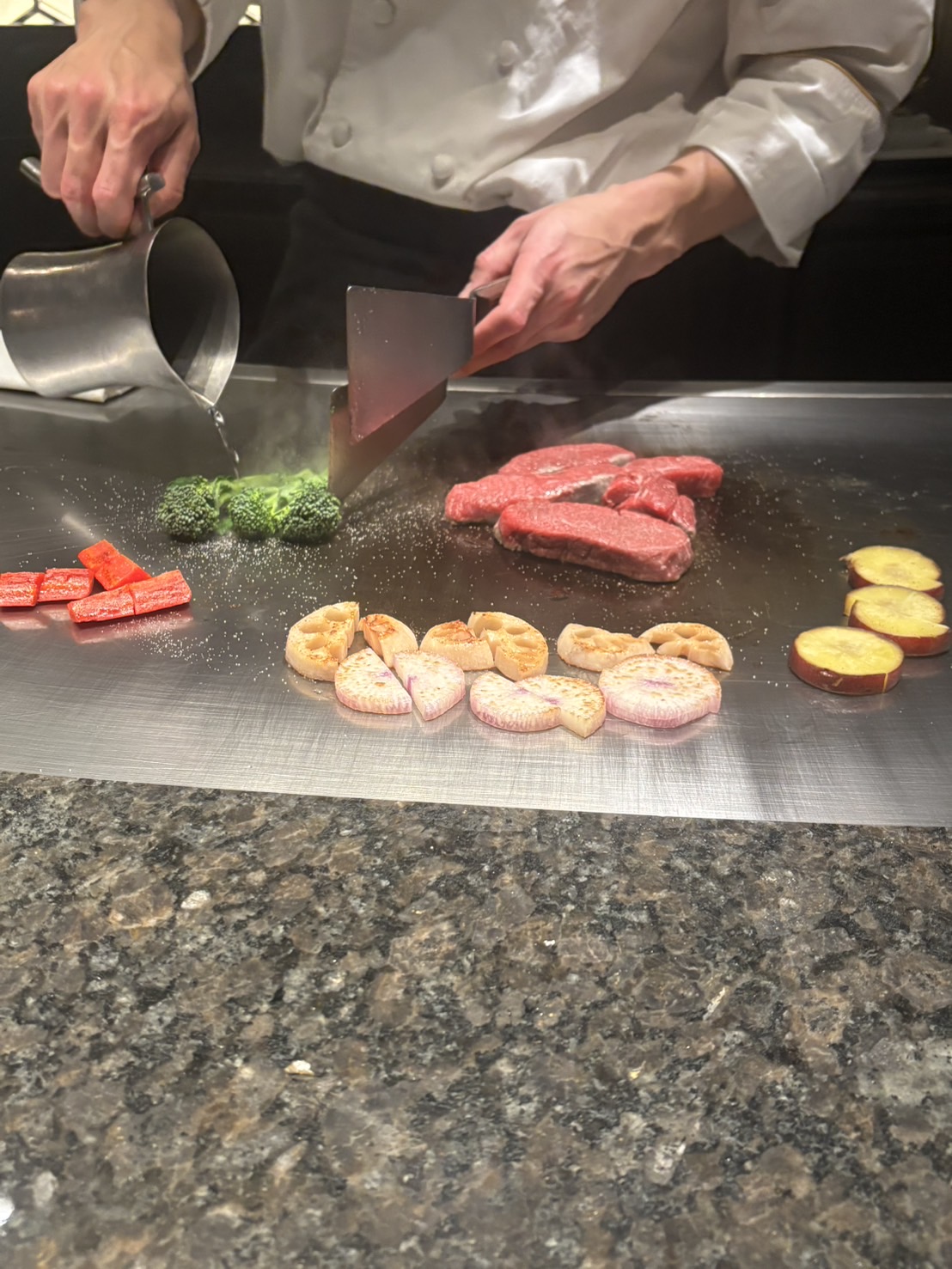 先日、両親の誕生日祝いで鉄板焼きに行ってきました。今回は2人とも50歳になるので、ちょっと頑張りました笑目の前で焼かれるお肉や野菜の音や香りは、やっぱり鉄板焼きならでは。料理長の手際の良さに、両親も「すごいね」「美味しそう」と終始楽しそうでした。両親が笑顔で食事をしてくれている姿を見られたのが一番嬉しかったです。これからもこういう時間を増やしていきたいと思いました。