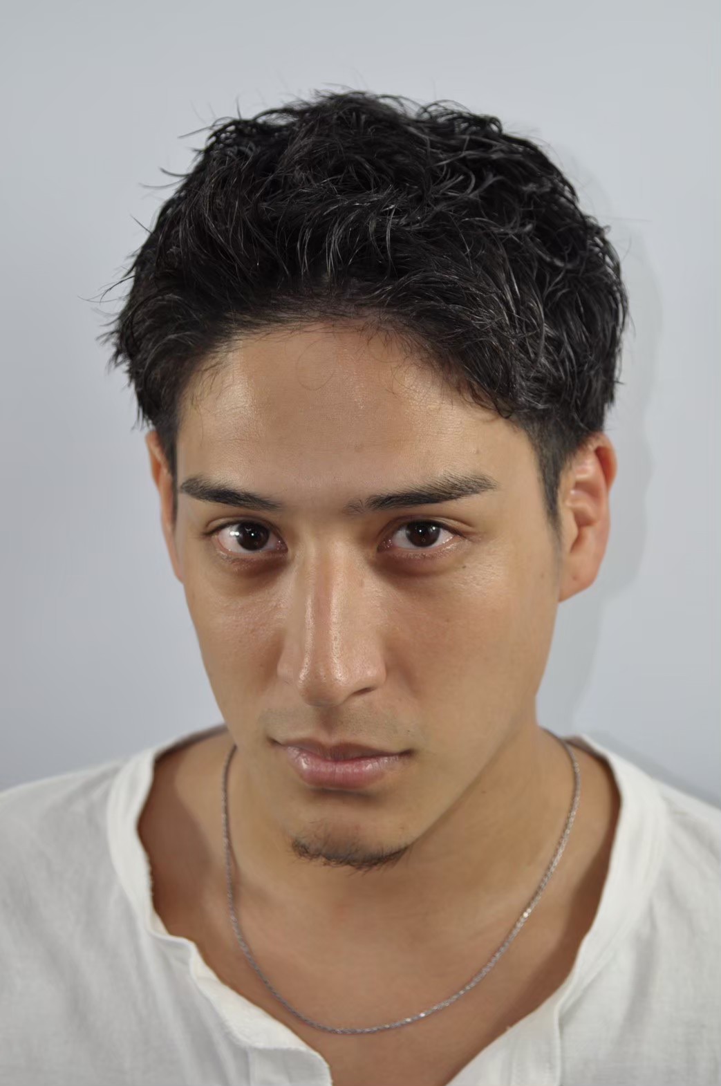 直毛で動きが出ない方へ。HIRO GINZAのパーマ技術で、自然な流れと立体感を実現。清潔感あるメンズヘアに。
