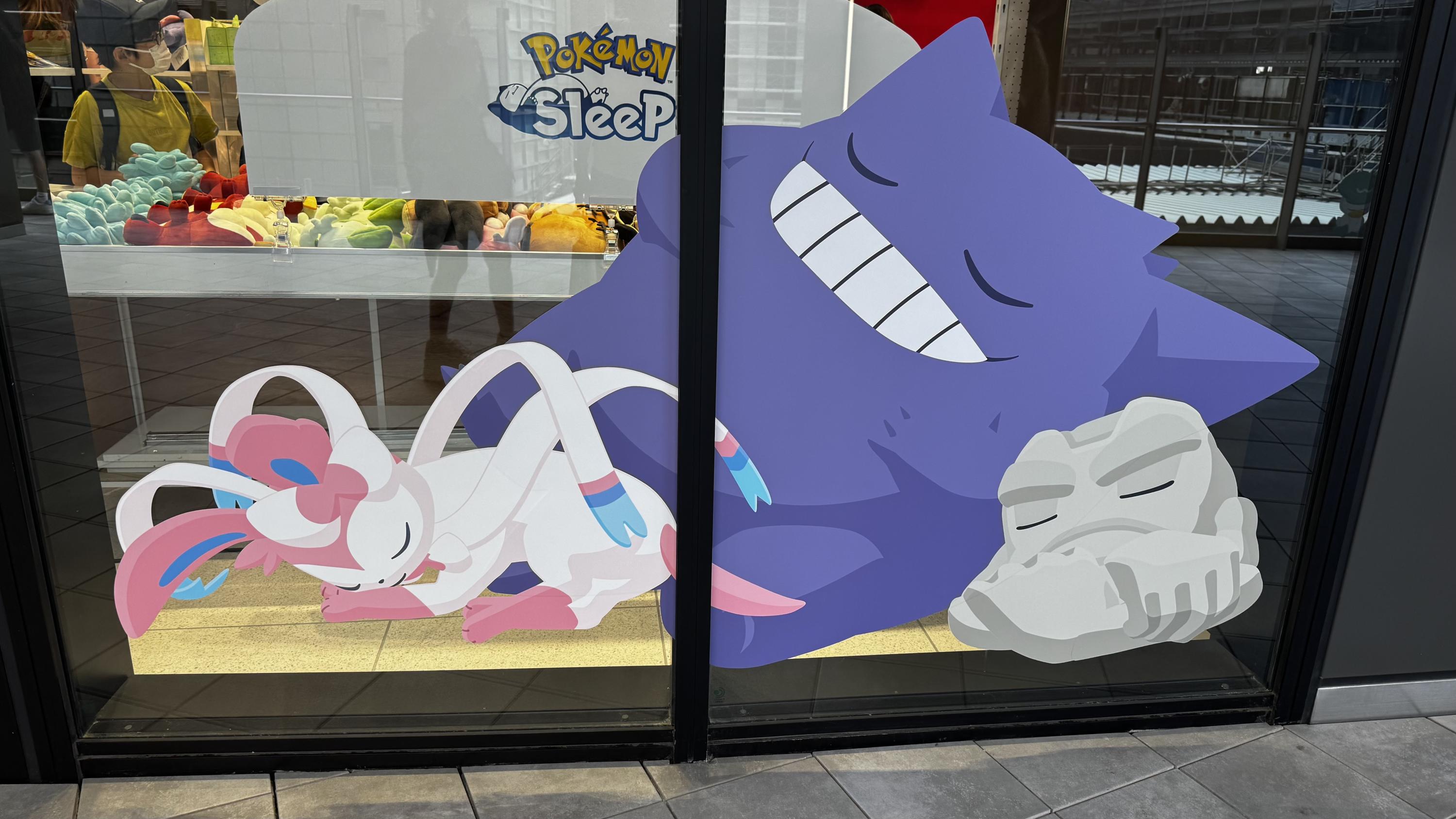 ポケモンスリープのポップアップへ。大きなカビゴンの姿に惹かれて、思わずカメラを構えました。ビルのガラス越しに映るポケモンたちの姿が、都会の光と重なって少し幻想的に見えました。