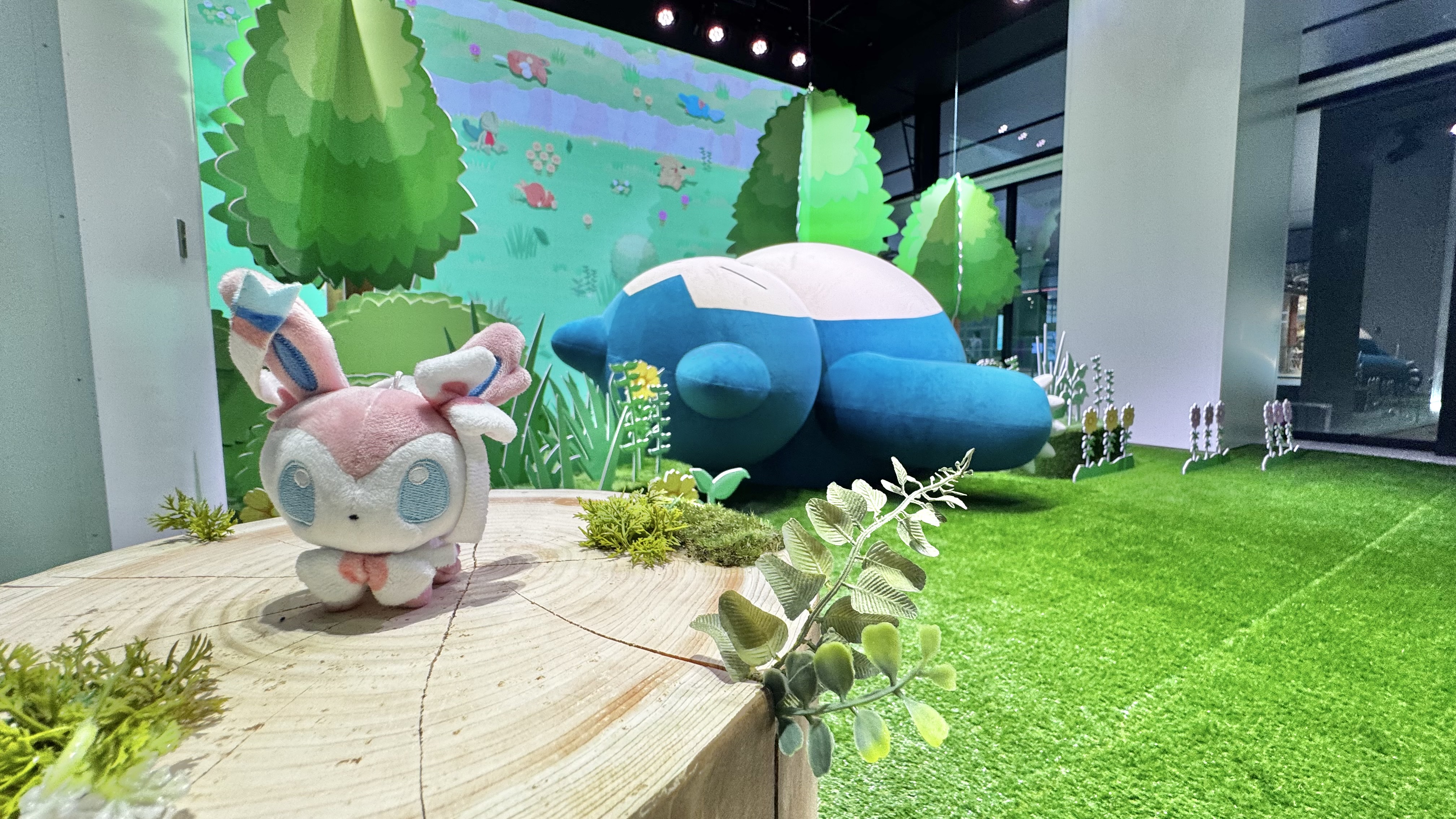 中に入ると、やわらかな光に包まれた空間が広がっていて、まるでポケモンたちの眠る世界に迷い込んだよう。ピカチュウがすやすやと眠る姿、イーブイが丸くなっている姿、どれも見ているだけで心がゆるみます。シャッターを切るたびに、画面越しの世界が少しあたたかく感じました。
