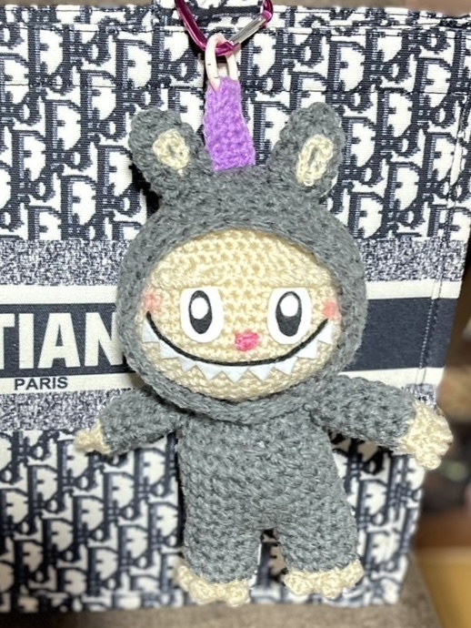実は、母が編みぐるみで「ラブブ」を作りました。