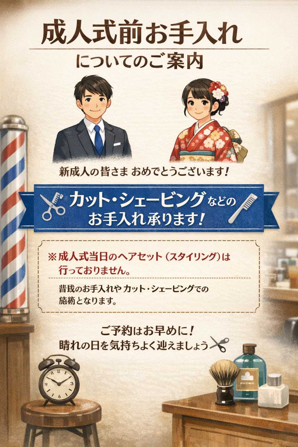 成人式直前はご予約が混み合いやすくなりますので、