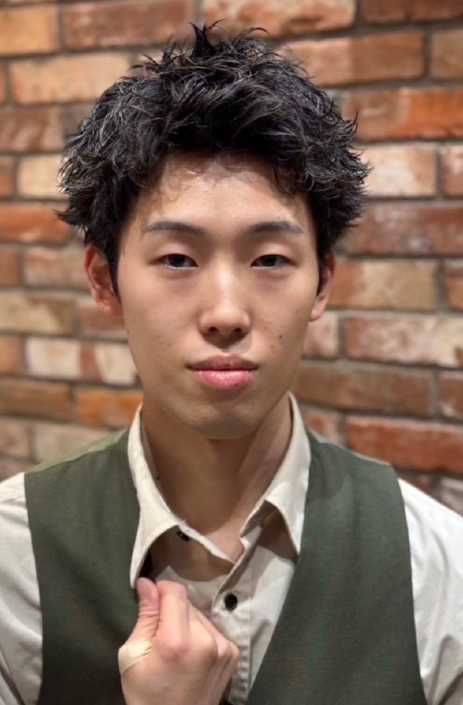 爽やかで清潔感を重視する方におすすめなのが「無造作アップバングショート × パーマ」。トップに自然な動きを加えることで、軽さと立体感を出しながらも、ビジネスでも好印象を与えるスタイルです。