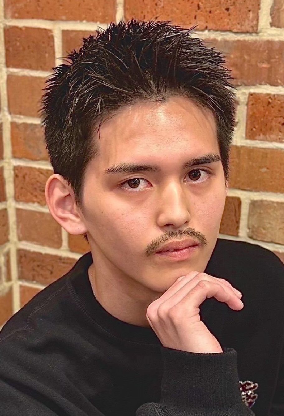 スタイリングはワックスで毛先に動きをつけたあと、ジェルで前髪を立ち上げながら固定。ツヤを出すならグリースを少量混ぜて、束感を際立たせるのもおすすめです。どんな場面でも頼れる、万能ショートスタイルです。====================================
