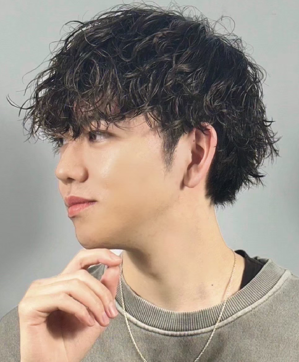 パーマスタイルの中でも圧倒的な人気を誇るのが【王道ツイストスパイラルマッシュ】です。マッシュベースの柔らかいシルエットに、ツイストスパイラルパーマで立体感と動きをプラス。清潔感とトレンド感を兼ね備えたデザインは、20~30代男性を中心に支持を集めています。セット次第でラフにもきっちりにも仕上げられる万能スタイルです。