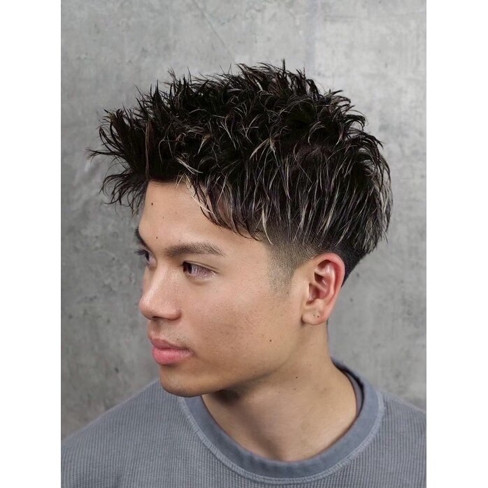ジェットモヒカンは、シャープさと男らしさを最大限に引き出せる人気スタイル。トップにしっかりと高さを出しつつ、サイドを締めることで、骨格がスッと綺麗に見えるのが特徴です。特にビジネスマンには、清潔感と力強さを両立できる点が好評。セットも簡単で、ドライヤーで前上がりに乾かし、ワックスを馴染ませるだけで立ち上がりがキープされます。
