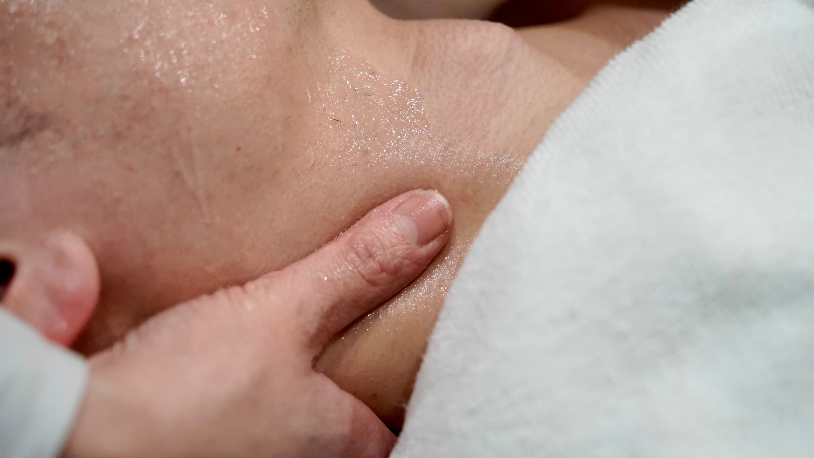 ネックリンパは首すじにそって流れをととのえる施術で、かたまりやすい部分をやさしくほぐします。