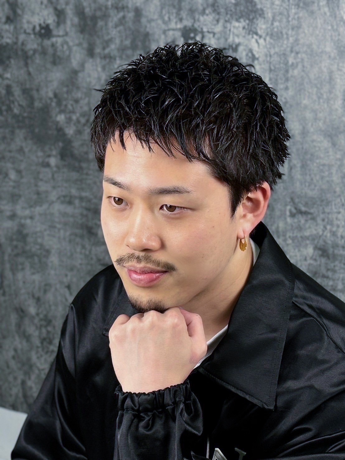ナチュラルな動きが出るショートスタイルで、清潔感と男らしさを両立した大人のメンズヘア。トップは軽く動きを出しつつ、サイドと襟足はすっきり収めているので、顔周りがシャープに見えて小顔効果もあります。ラフに動く毛束感が色気のある雰囲気を出してくれるので、カジュアルにもキレイめにもハマる万能スタイル。ヒゲとの相性もよく、ナチュラルなワイルド感が出るのもポイントです。仕事でもプライベートでも使いやすい、大人のショートスタイルです。
