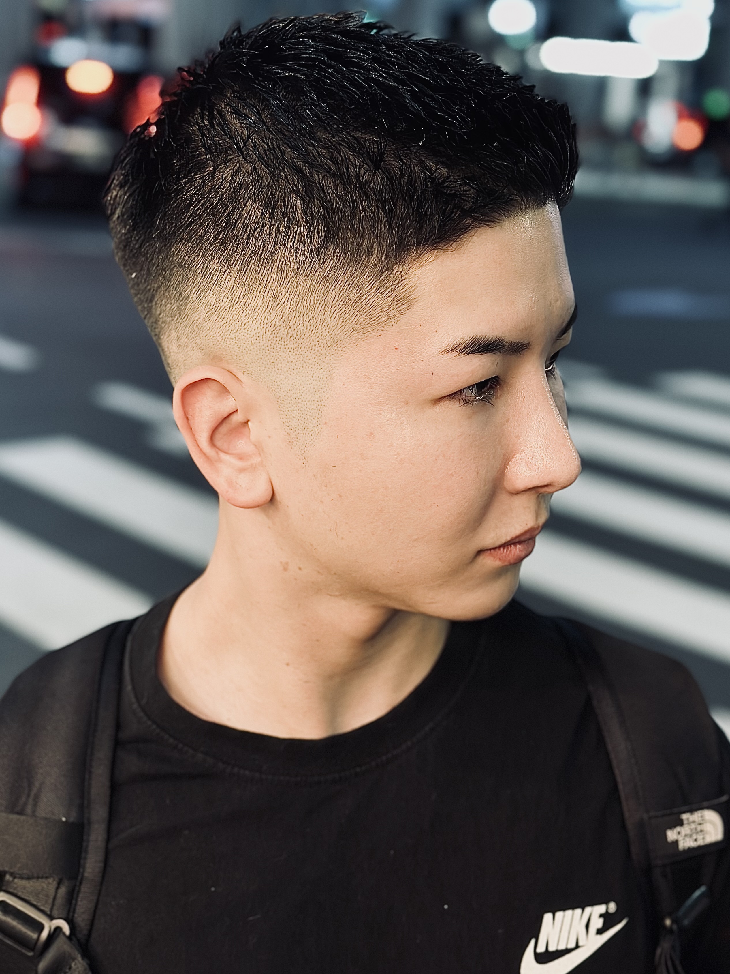 この時期に特に人気なのが、清潔感と男らしさを同時に叶えられるフェードカットです。段階的に薄く仕上げていくことで、横や後ろが膨らみやすい方でも自然におさまるシルエットを作りやすくなります。メリハリのある後頭部のラインは冬のアウターとも相性が良く、首まわりがもたつきやすい季節でもスタイリッシュに見せやすいのが魅力です。また、前から見ても横から見てもシャープな印象が残るため、仕事でもプライベートでも清潔感をキープできます。