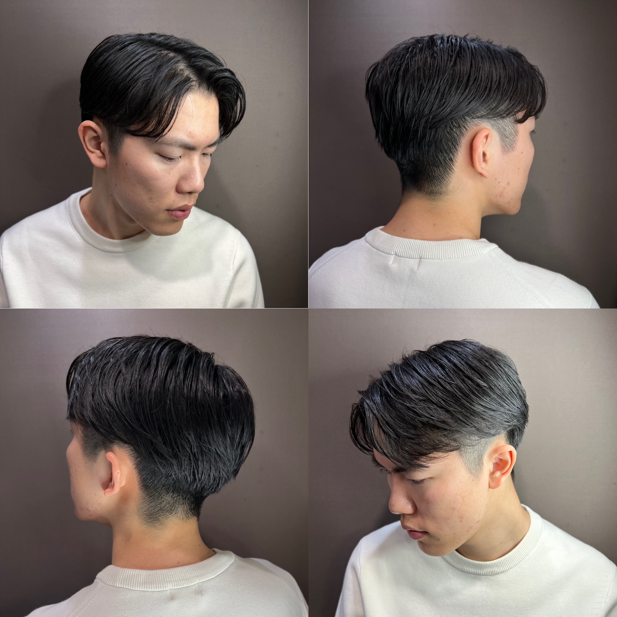 自然な2ブロックは、メリハリを出しつつやりすぎ感を出さない絶妙なバランスがポイント。髪質に合わせて薄く刈り上げたり、トップとの長さの差を控えめにすることで、どんなシーンにも馴染みます。ヒロ銀座では骨格に合わせてシルエットを微調整し、セットが苦手な方でも簡単に形が決まるように設計しています。