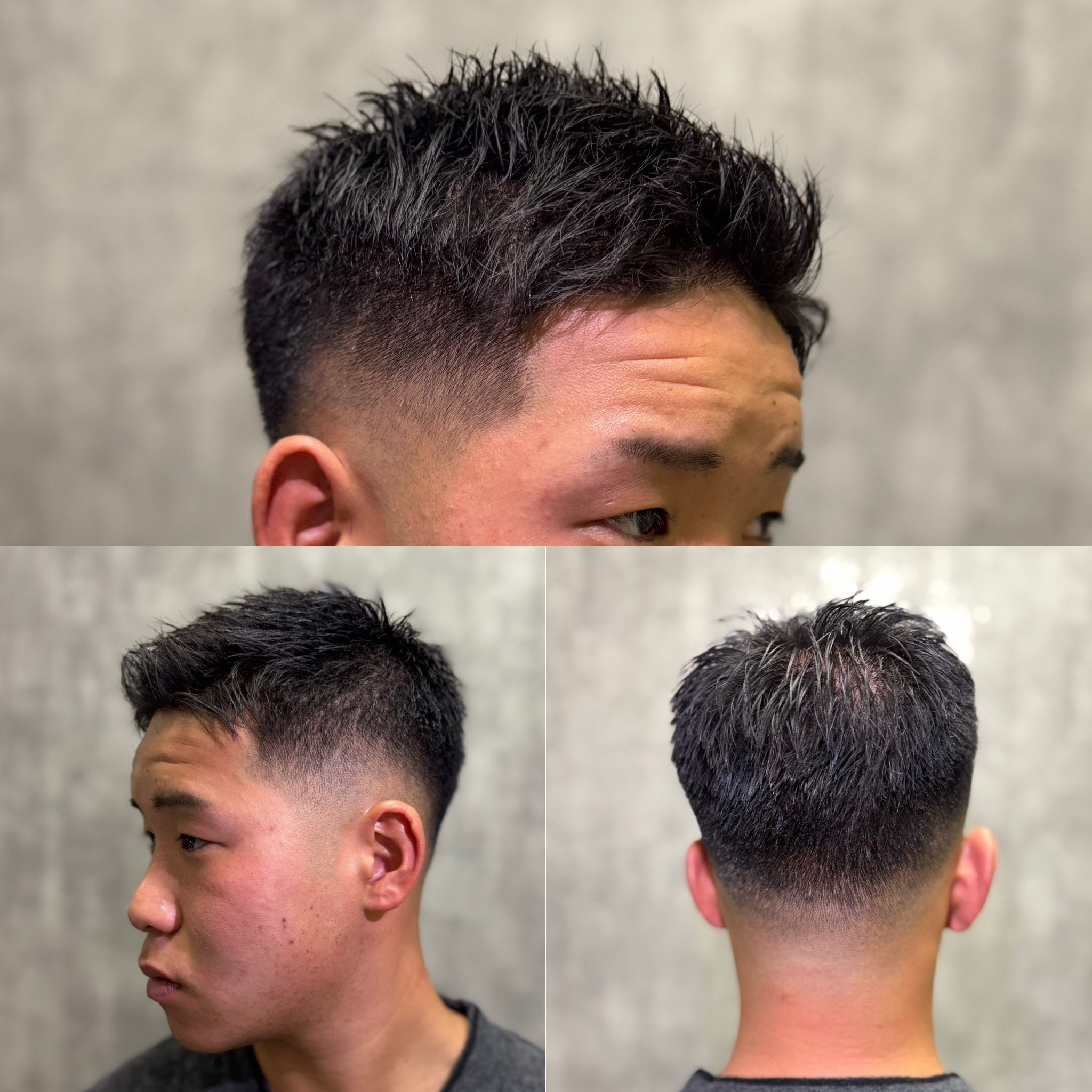 短髪はシルエットがはっきりするため、顔立ちが引き締まり、清潔感を演出しやすいスタイルです。2ブロックを自然に入れることで、横のボリュームを抑えつつ、全体のバランスを整えることができます。派手すぎず、さっぱりとした仕上がりは、仕事でもプライベートでも好印象につながります。