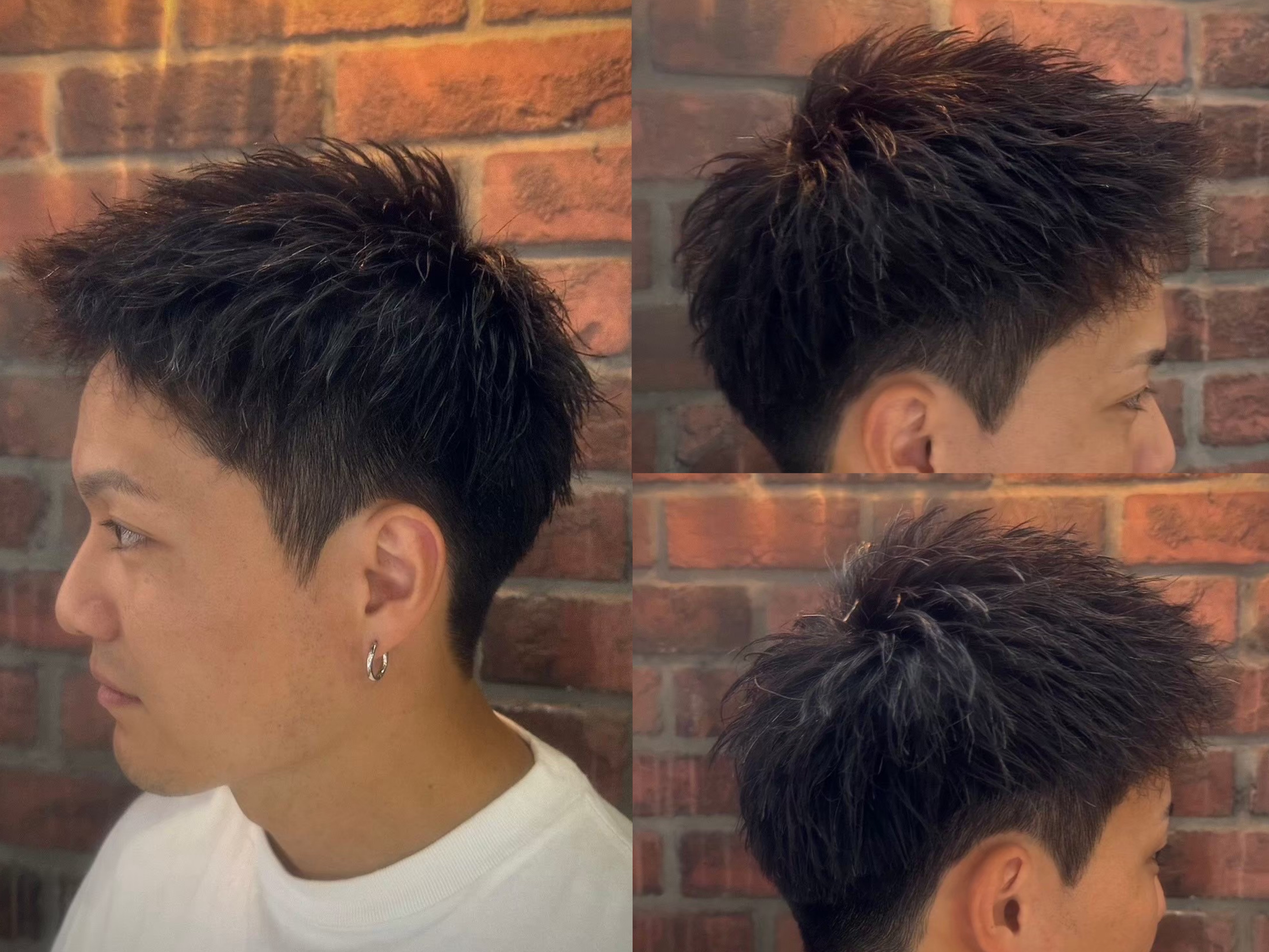 スパイキーショートは、トップに動きを出しながら全体をタイトに仕上げるスタイル。毛先を立たせることでシャープな印象を作りつつ、程よい束感でトレンド感もプラスできます。朝のスタイリングも簡単で、ワックスを軽く馴染ませるだけで決まるのも魅力。直毛でもクセ毛でもアレンジがしやすく、スーツにもカジュアルにもマッチする万能ショートです。