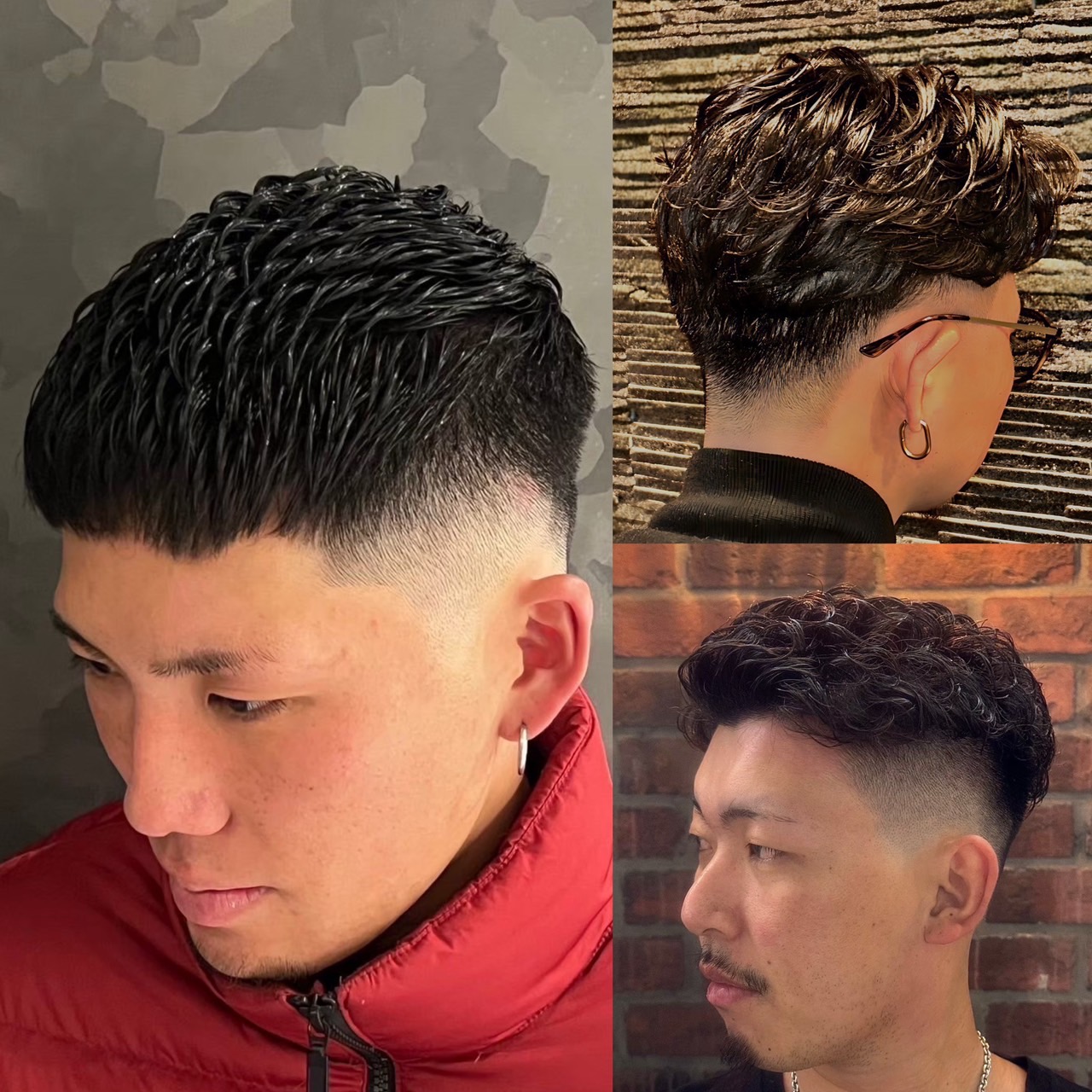サイドと襟足をすっきり整えるフェードカットは、清潔感と男らしさをしっかり演出してくれます。そこにパーマをプラスすることで、トップに自然な動きと立体感が生まれ、スタイリングの幅が一気に広がります。直毛でボリュームが出にくい方や、毎朝のセットに時間をかけたくない方にもぴったりの組み合わせです。
