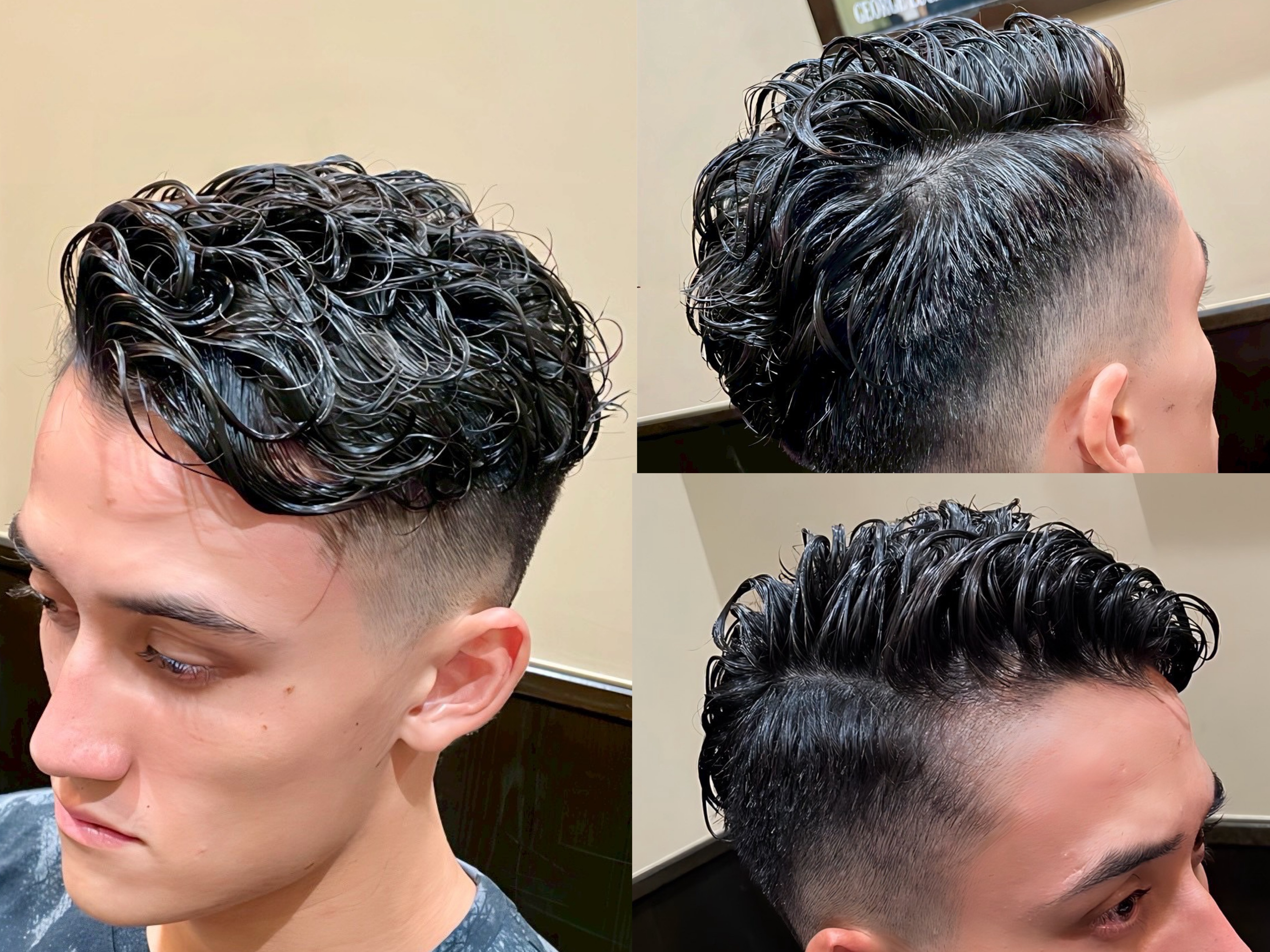 この時期人気なのが、輪郭をすっきり見せてくれるフェードを取り入れたスタイル。首元が重くなりやすい冬でも清潔感が出やすく、スーツにも私服にも自然にハマります。さらに動きを出したい方には極道パーマを組み合わせることで、直毛でも立体感が出て、朝のセットも一気に楽になります。派手すぎない強さがあるので、初めてパーマに挑戦する20代男性にも取り入れやすいのが特徴です。
