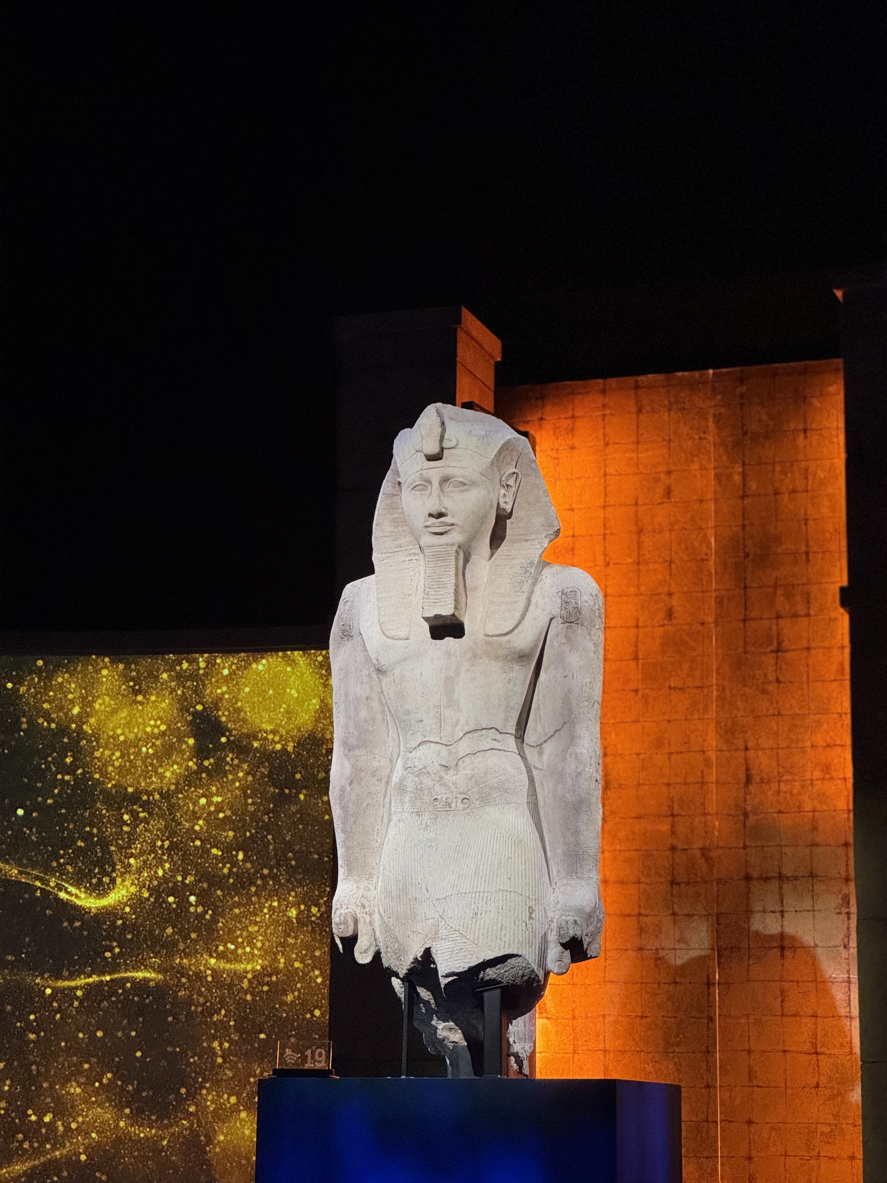 ゆりかもめ市場前駅を降りてすぐ、CREVIA BASE Tokyoで開催中の「ACNラムセス大王展 ファラオたちの黄金」へ。エジプト政府公認のこの展覧会、古代の至宝180点が日本初公開だとか。入場すると、まず黄金の仮面が輝く! ラムセス2世の巨像は威容堂々で、思わず息を飲む。動物ミイラや宝石の宝飾品も繊細で、ファラオの栄華が蘇るよう。
